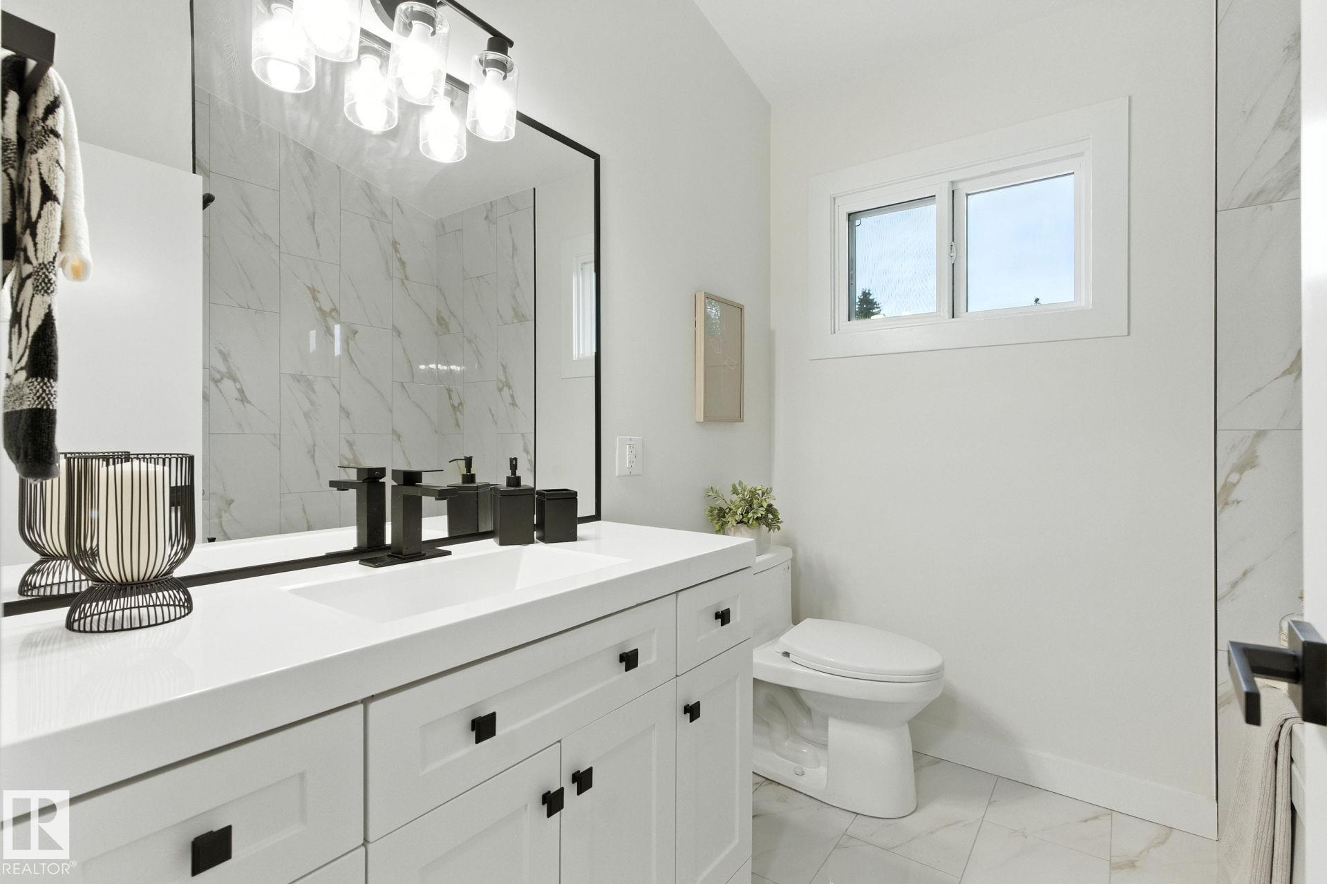 This Sturgeon Heights beauty has it all with $150,000 worth of renovations! Massive 75x110 lot, 4 beds and 2 full baths, heated oversized attached garage, and a total of 2423 square feet of living space! Cozy wood stove, incredible games room, and a showstopper backyard with firepit. Walk to all school levels, and the St. Albert Farmers' Market. Upgrades include new shingles, soffit, fascia, gutters, downspouts, vinyl windows, kitchen with quartz countertops, new appliances, fully renovated bathrooms with j...