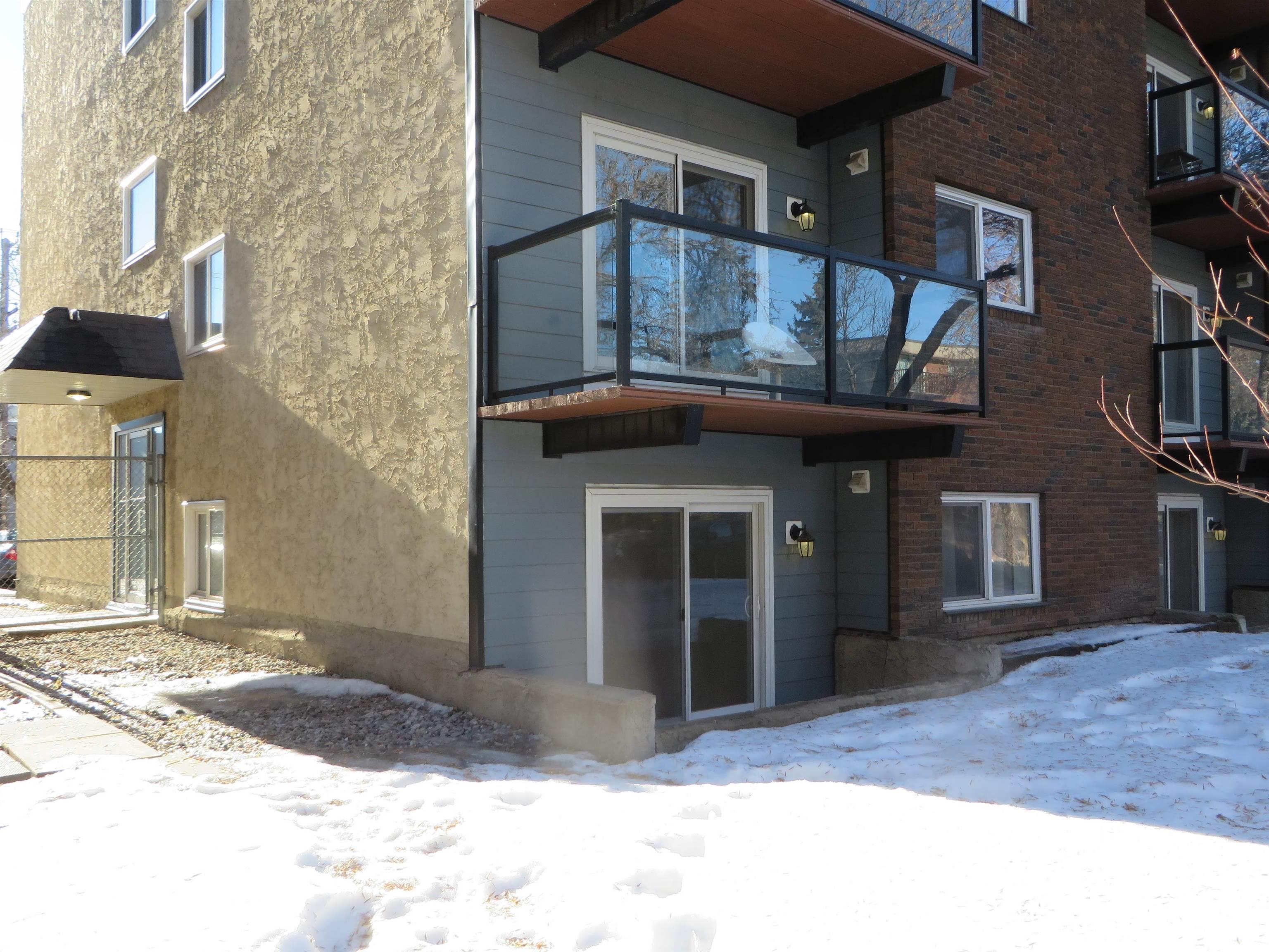 This upgraded contemporary 1 bedroom, 1 bath main floor corner unit is perfectly located on a quiet tree lined street just steps away from Whyte Ave amenities including unique boutique shops, variety of casual & trendy dining, cafe, pubs, year-round farmer market & more. The spacious bright and open floor plan features large living room w/ patio doors to a enclosed patio, upgraded maple kitchen with granite countertop & tiled backsplash. Spacious bedroom has mirror closet door. Insuite laundry, maple hardwo...