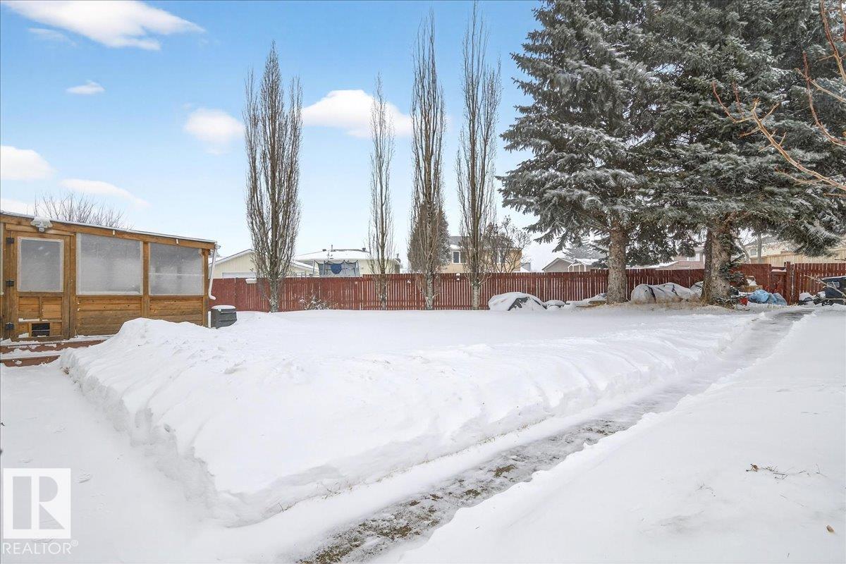 Terrific family home located in a quiet cul de sac and situated on a huge pie shaped lot. Features a total of 4 bedrooms and 2.5 baths. Spacious family sized kitchen with loads of cabinets and a spacious dinette. Primary bedroom offers a full ensuite bath and walk in closet. 3rd level family room with fireplace. Finished basement. Upgrades include high efficiency furnace with AC, newer hot water tank, newer windows and more. Large yard with mature trees and covered deck. Rear lane offers potential for RV pa...
