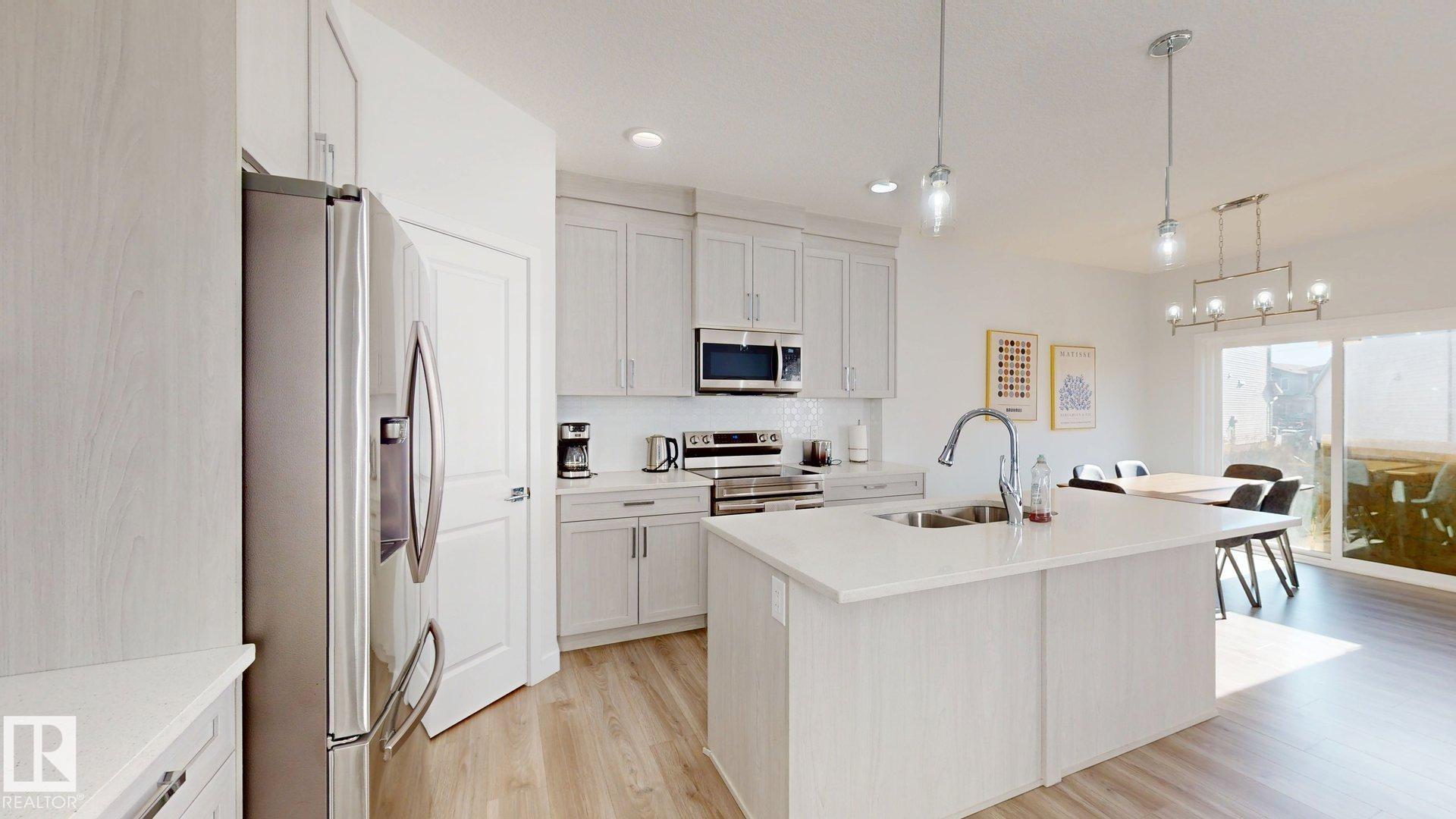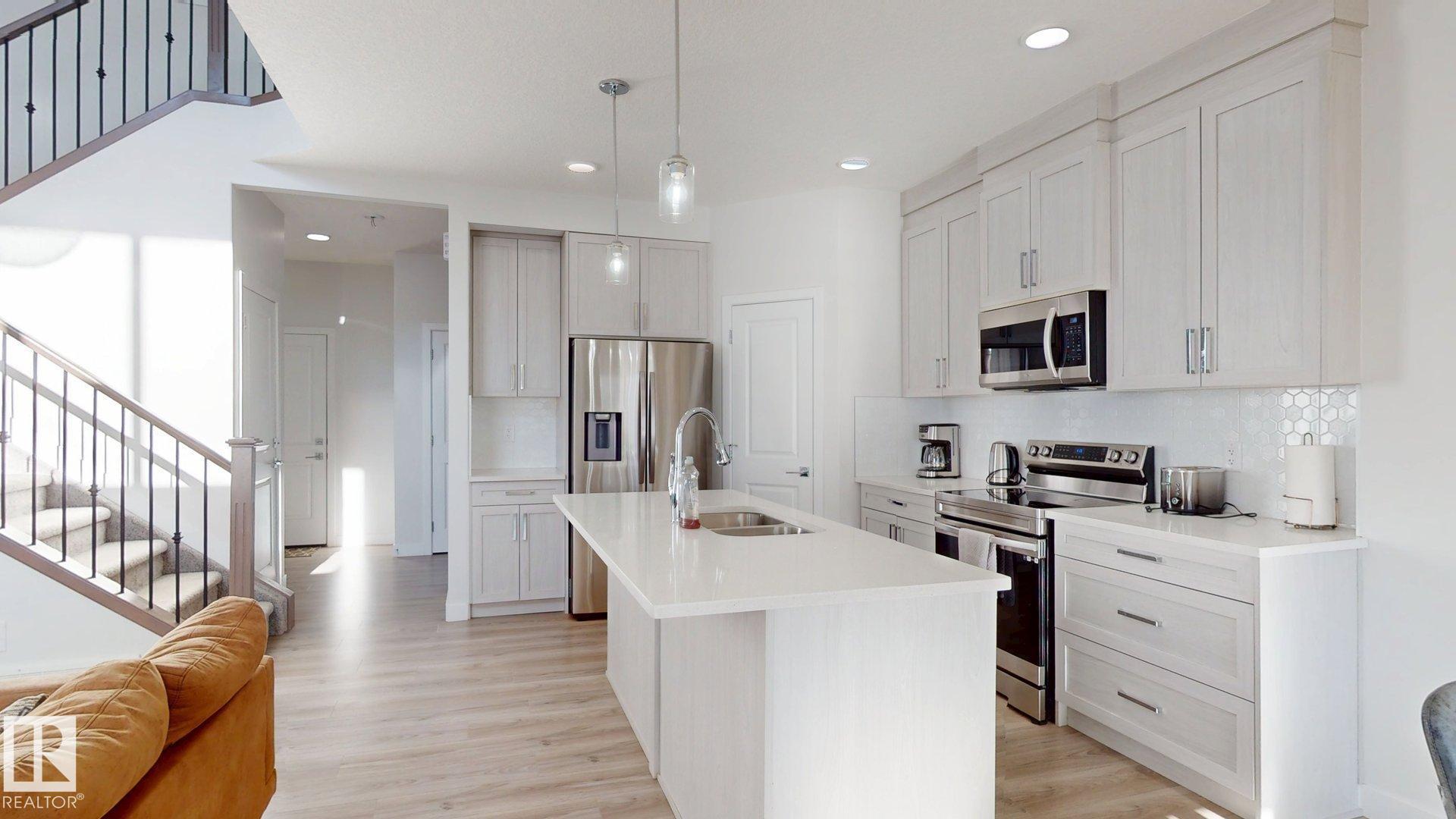 Amazing opportunity in a quiet cul-de-sac backing onto a picturesque ravine! This beautifully designed 4-bedroom, 3.5-bath home with a legal basement suite offers exceptional value and flexibility. Step inside to soaring 9-ft ceilings, modern vinyl flooring, and an inviting open-concept layout. The chef-inspired kitchen impresses with quartz countertops, a large island, stainless steel appliances, tall upper cabinets, and a convenient corner pantry. The upper level offers a bright bonus room, laundry, a ful...