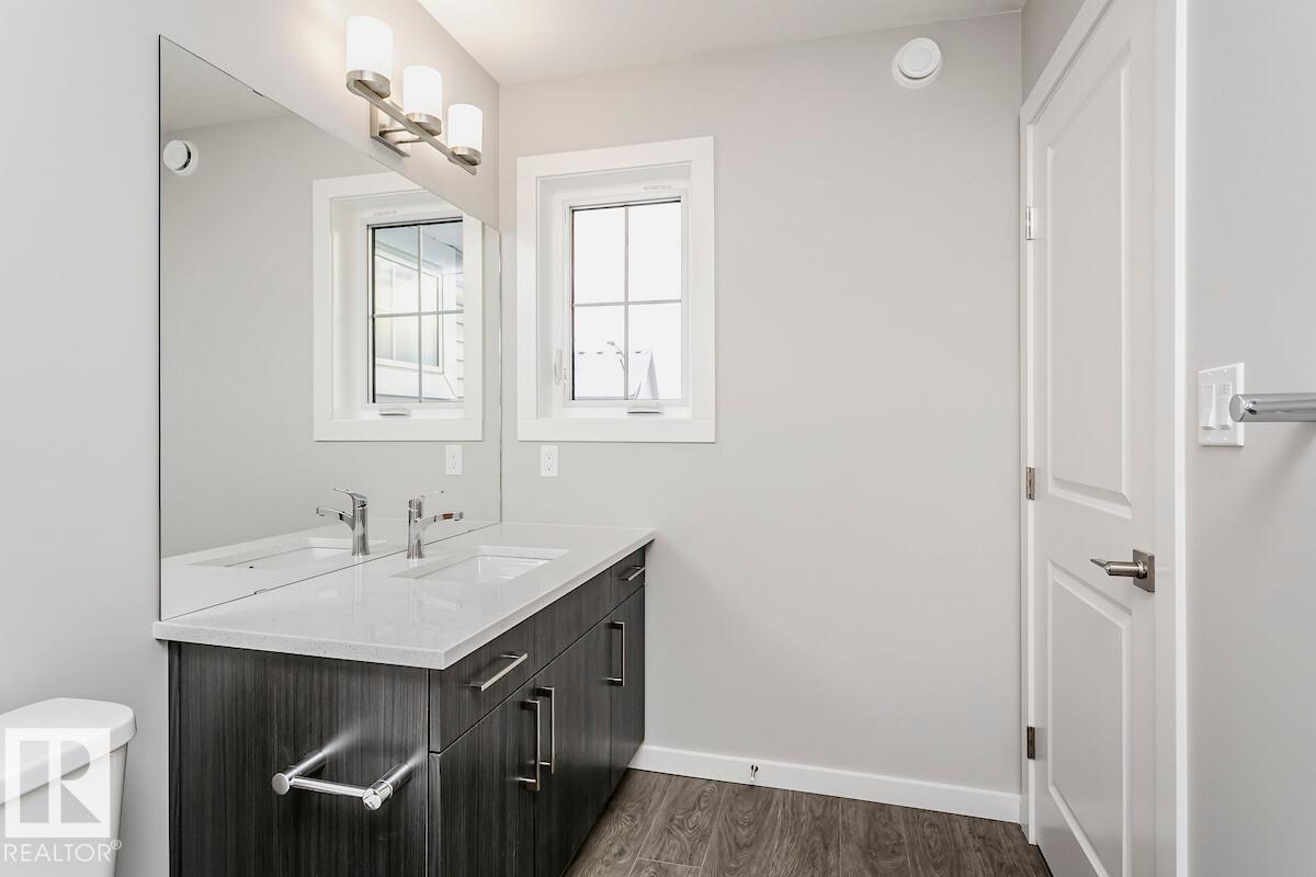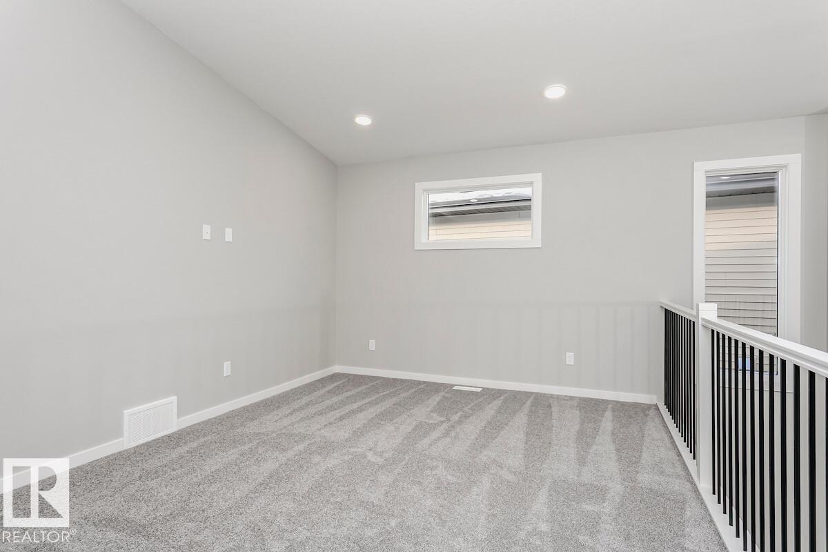 Backing onto a park with no neighbours behind -Side entrance with direct basement access. -9’ basement walls with two windows and a 3-piece bathroom rough-in for future development. -Bright open-to-below design with open-concept living spaces and vaulted ceiling. -Electric Fire & Ice linear fireplace with timer and color controls, flanked by windows for added natural light. -Main floor mudroom with walk-in closet, built-in bench, shelving, and hooks. -Dedicated main floor office / flex room. -L-shaped kitch...