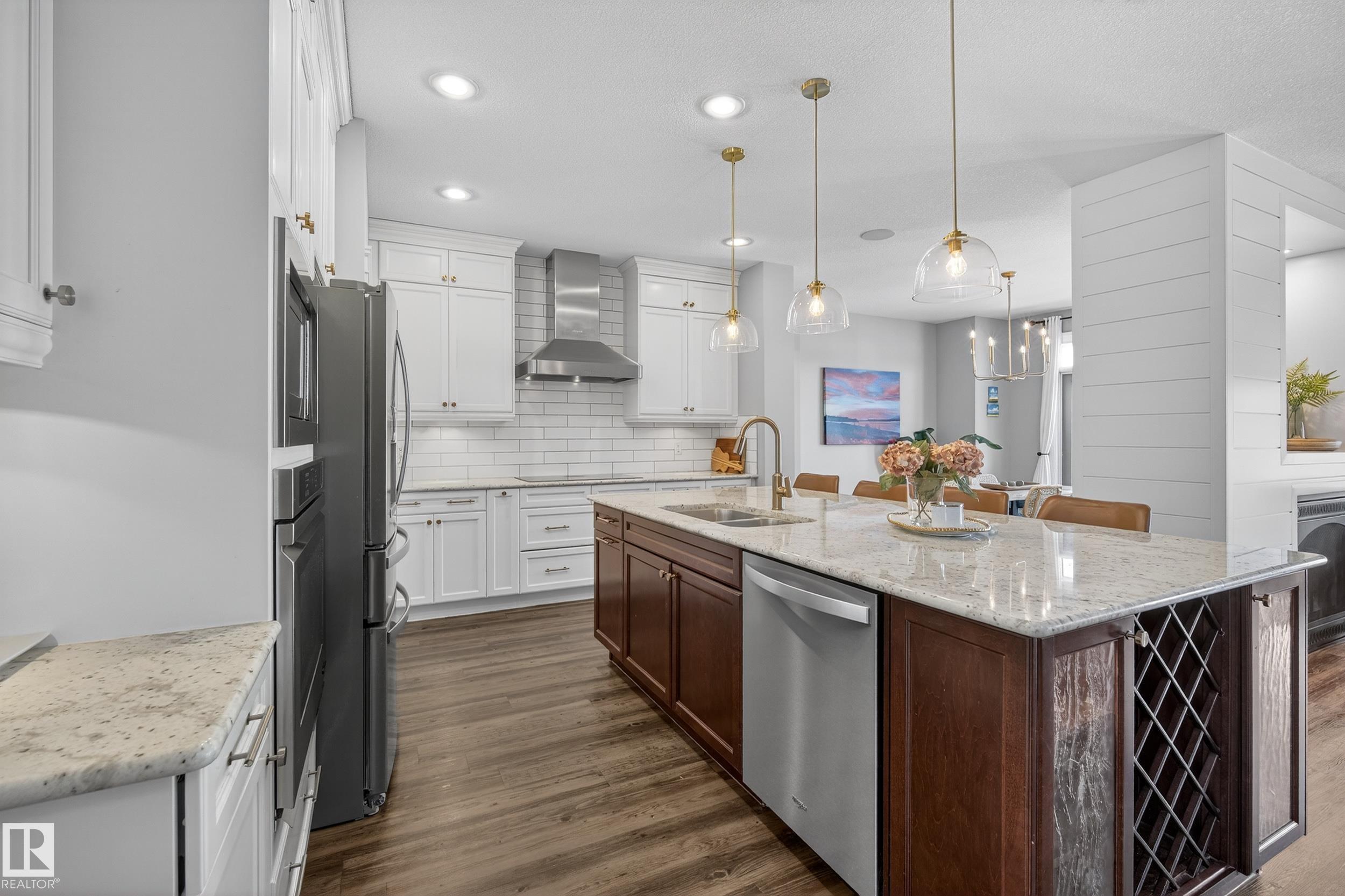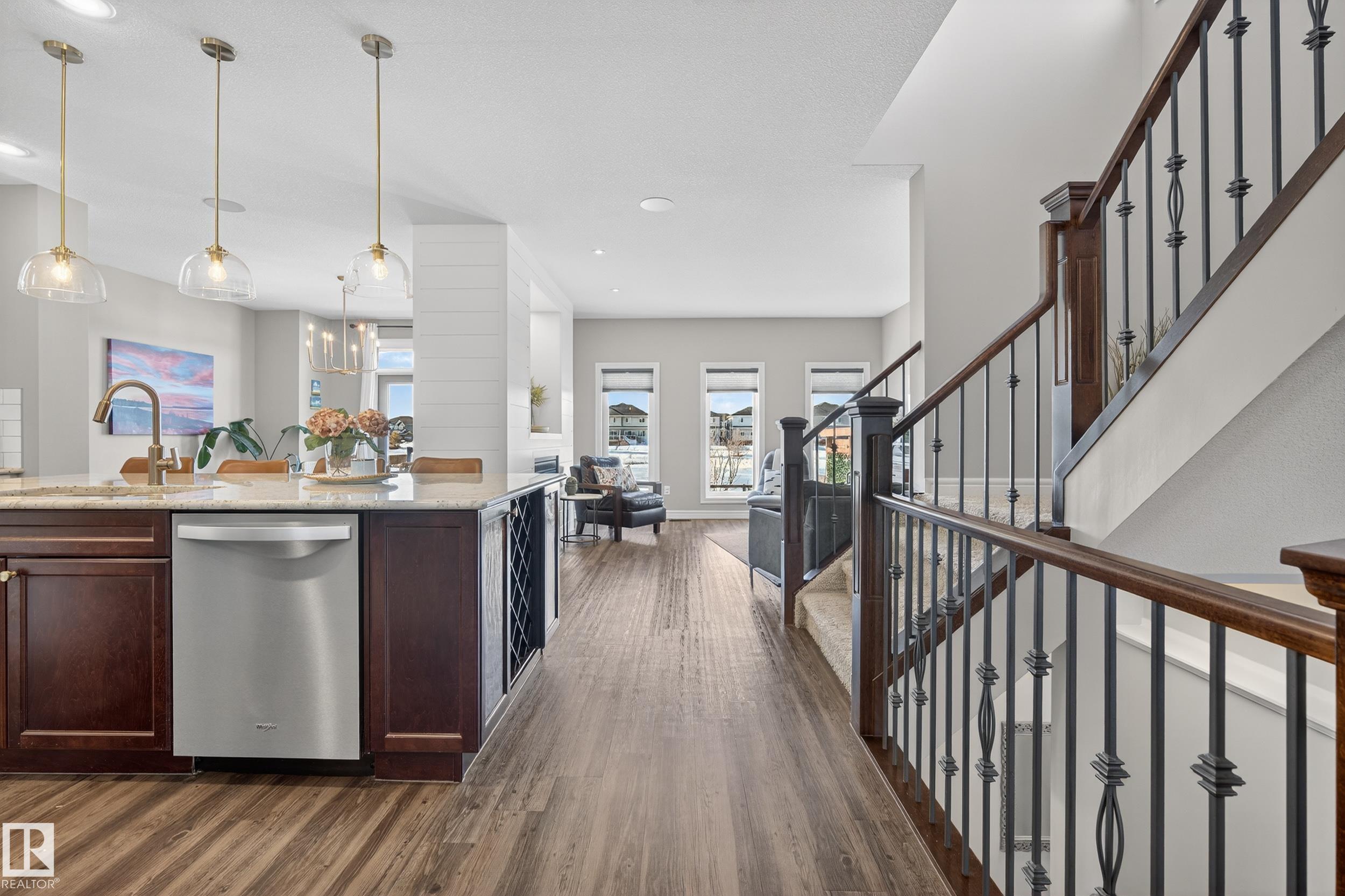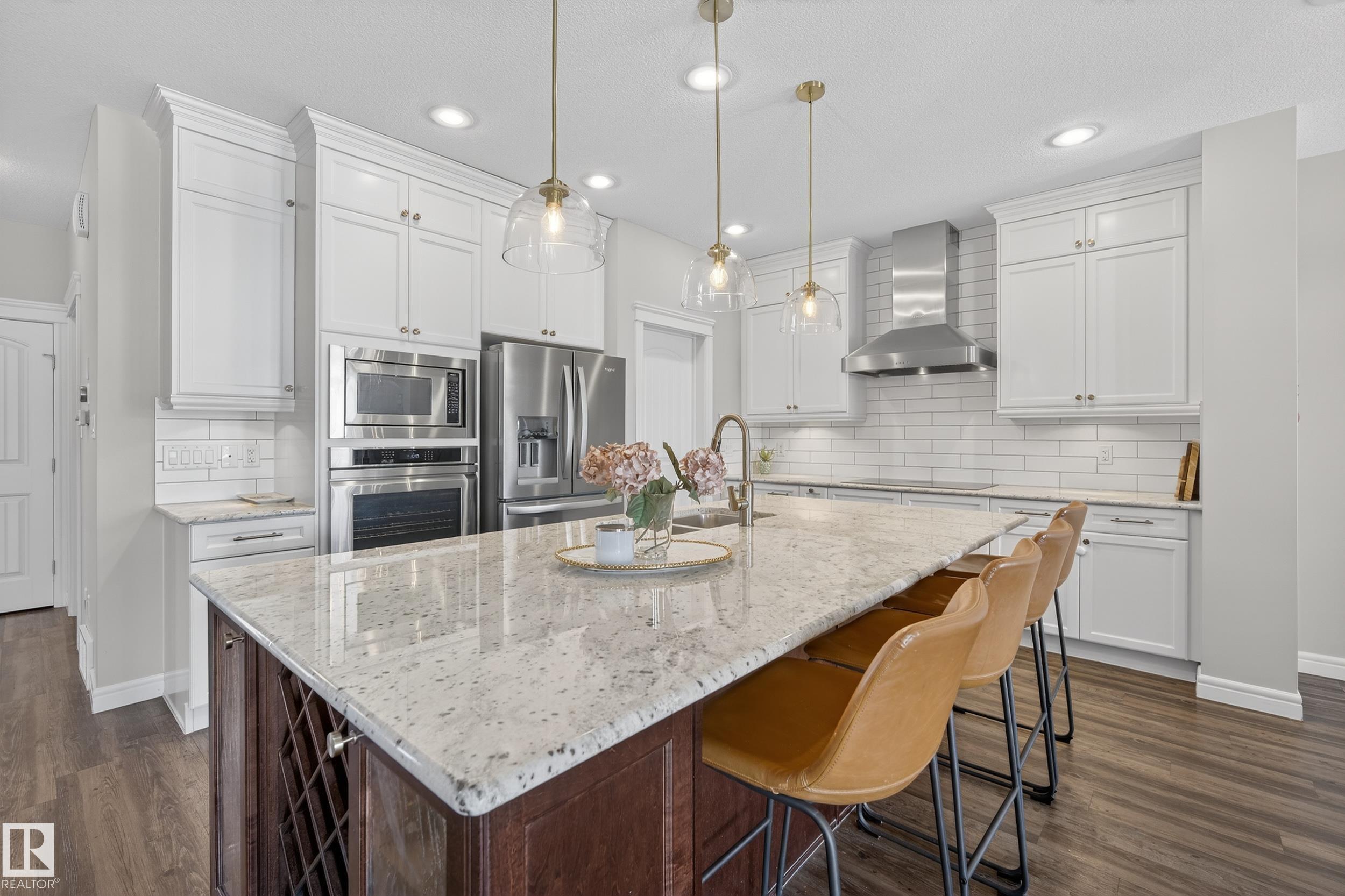 Enjoy stunning pond views and breathtaking west-facing sunsets from the spacious back deck of this beautifully designed home. Built by Pacesetter, it features a unique layout with two elegant double-sided fireplaces that add warmth and character to the main living areas. The bright open-concept design showcases oversized windows and luxury vinyl plank flooring. The chef-inspired kitchen is perfect for entertaining, complete with a large granite island, built-in wall oven, professional hood fan, full-height ...